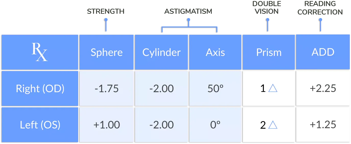 Eyeglass prescriptions specify up to five types of vision correction parameters, measured separately for the Right Eye (OD) and Left Eye (OS). Understanding your prescription helps you make informed decisions regarding your eye health and vision care. Always ensure that your prescription is current, and schedule an eye exam if you notice any changes in your eyesight.