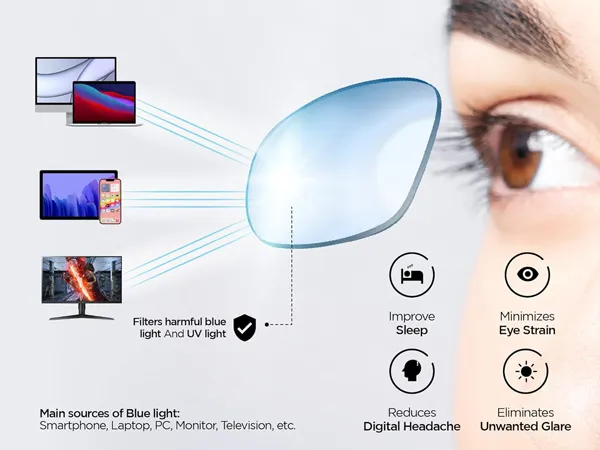 The prevalent use of digital screens and LED lighting exposes eyes to blue light wavelengths that can cause eye strain, contribute to headaches, and affect sleep. Blue light blocking coating filters these wavelengths, reducing fatigue and sleep disruption while maintaining visual clarity for extended screen use.